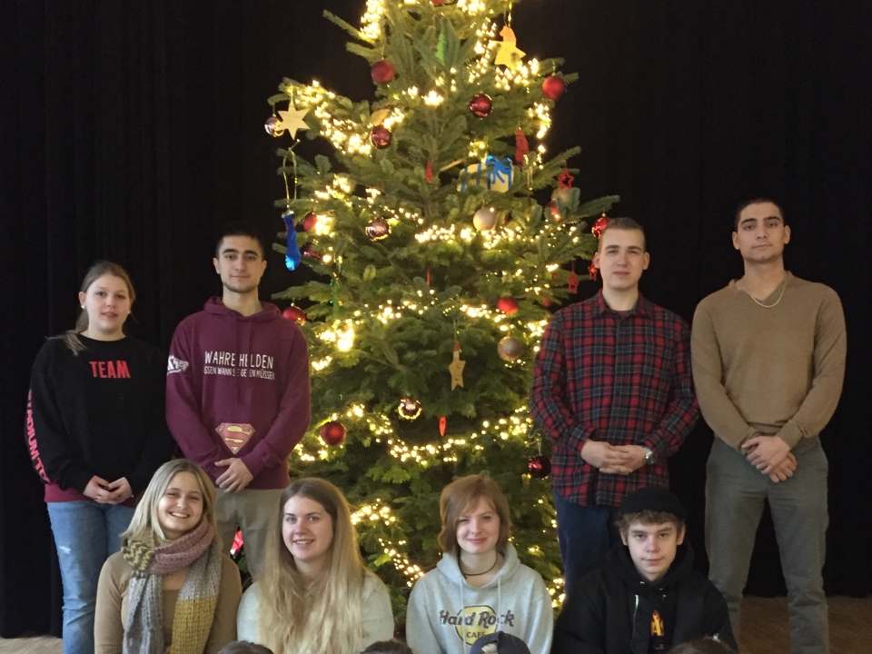 Mit einer Höhe von 4,5 Metern und verziert mit über 4000 kleinen Lichtern verströmt er wieder eine weihnachtliche Atmosphäre in der Aula. Natürlich darf das Weihnachtsrätsel nicht fehlen! In diesem Jahr gibt es wieder einiges zum Knobeln: Welche Augen gehören zum wem? Teilnehmen können alle Schülerinnen und Schüler, Teilnahmezettel gibt es im Sekretariat bei Frau Kelle. Viel Glück!