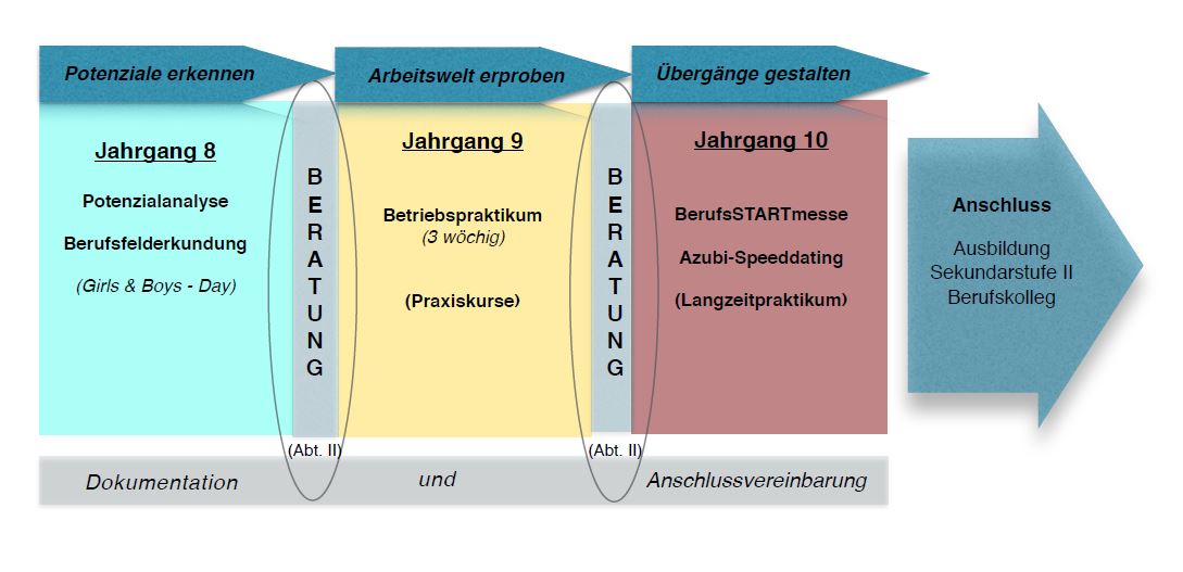 Ab Klasse 9/2 werden Anschlussvereinbarungen getroffen. Die Berufsberatung wird in geeigneter Form eingebunden.