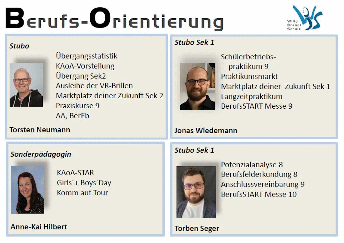 Für das Bewerbungstraining erhalten sie den letzten Schliff beim Benimmtraining, führen Betriebsbesichtigungen durch und beschäftigen sich bei der DASA in Dortmund mit dem Thema Arbeitsschutz. Begleitet werden diese projektartig angelegten Unterrichtseinheiten durch kontinuierliches Arbeiten in drei Fächern der Berufsorientierung: Catering, Computerarbeit/Kaufmännische Schwerpunkte und Vorbereitung auf das Handwerk/die Industrie. Durch unsere Kooperationspartner aus Industrie und Handwerk sowie den Berufseinstiegsbegleitern und Übergangsbegleitern begleiten wir die Schüler auf ihren Weg in die Ausbildung oder zum Berufskolleg und stellen sicher, dass jeder Schüler individuell nach seinen Stärken in der Berufsfindung begleitet wird. Eine detaillierte Beschreibung der einzelnen Elemente der Berufsorientierung finden sie auf unserer Website und in unserem BO-Curriculum.