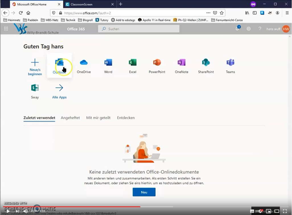 - Unsere schuleigene Office365-Instanz (Outlook, One Note, Teams, ...) (Anmeldung:
